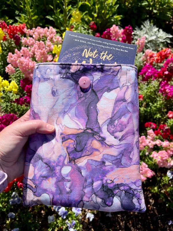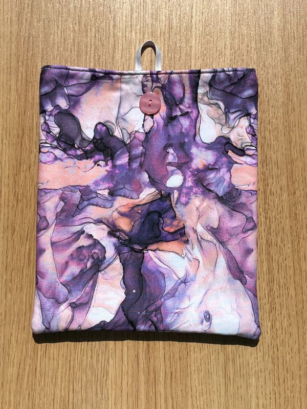 Wrap your favorite reads in a little extra magic with this handmade padded book sleeve, featuring smoky swirls of purple and peach drifting across a soft white background. Made with soft 100% cotton inside and out, and lightly padded for protection, it's a cozy way to keep your books safe from crumpled pages, bent corners, and everyday wear.