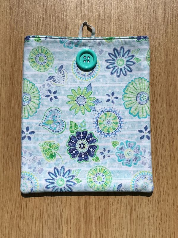 Add a little extra calm to your reading time with this handmade padded book sleeve, featuring soft shades of green, blue, and turquoise mandala flowers against a pale, dreamy background. Lightly padded and made with 100% cotton inside and out, it's designed to help keep your favorite reads safe from bent corners, crumpled pages, and the chaos of everyday life — while adding a colorful, serene touch to your day.