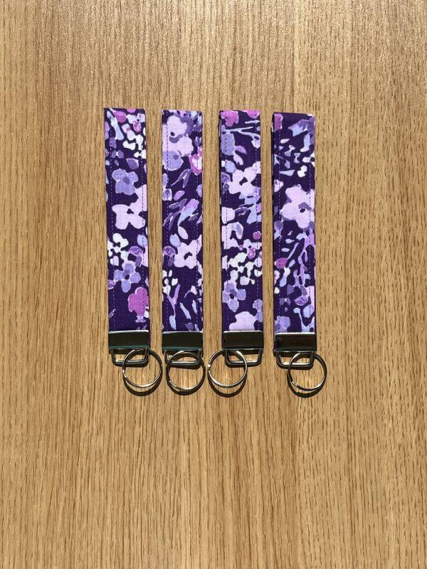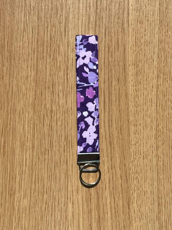 Make a bold, cheerful statement with this handmade fabric wristlet keychain, featuring vibrant purple flowers blooming across a bright purple background. Lightweight and flexible, it slips comfortably onto your wrist — keeping your keys close and adding a playful pop of color to even the busiest days.